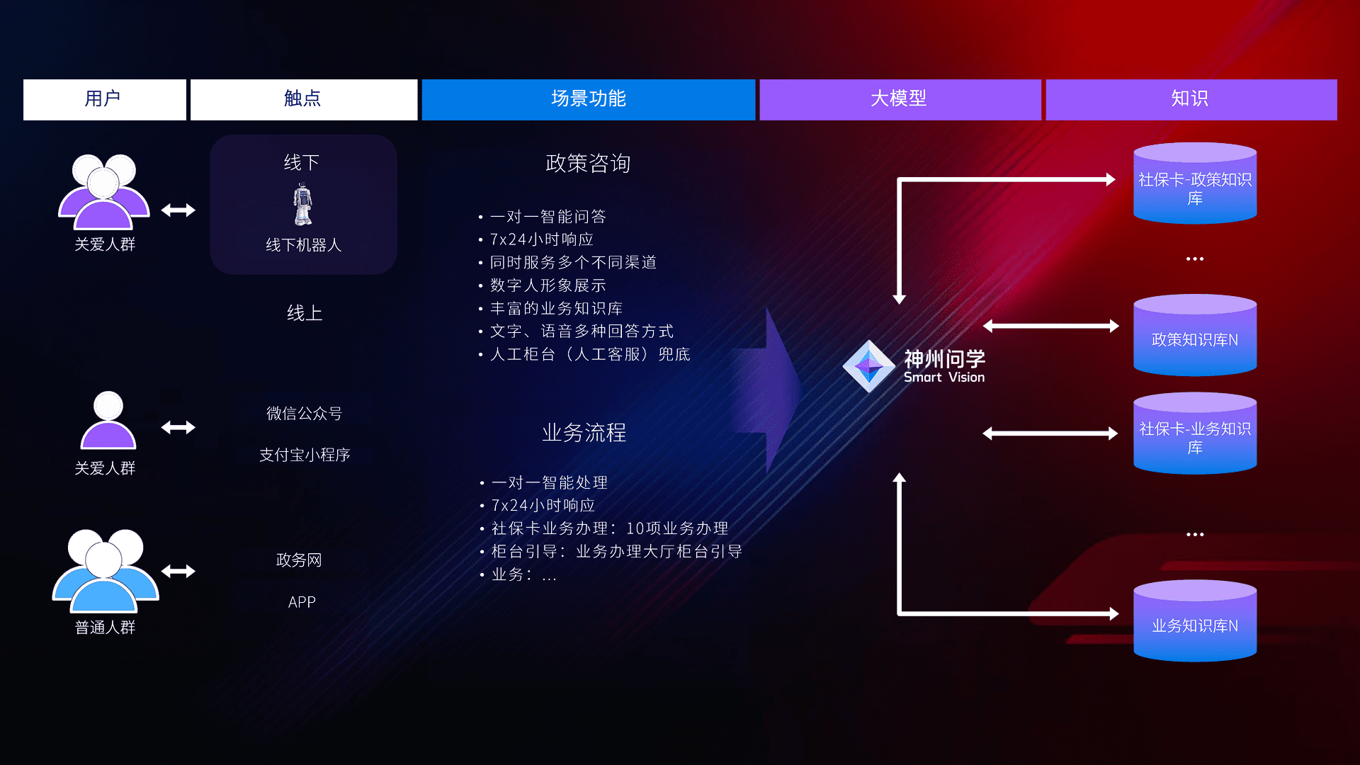 在服务大厅部署客服机器人,,,在线上应用和小程序配置客服数字人,,724小时为群众解答常规问题,,客服机器人无法处理的,,转现场人工处理。。。